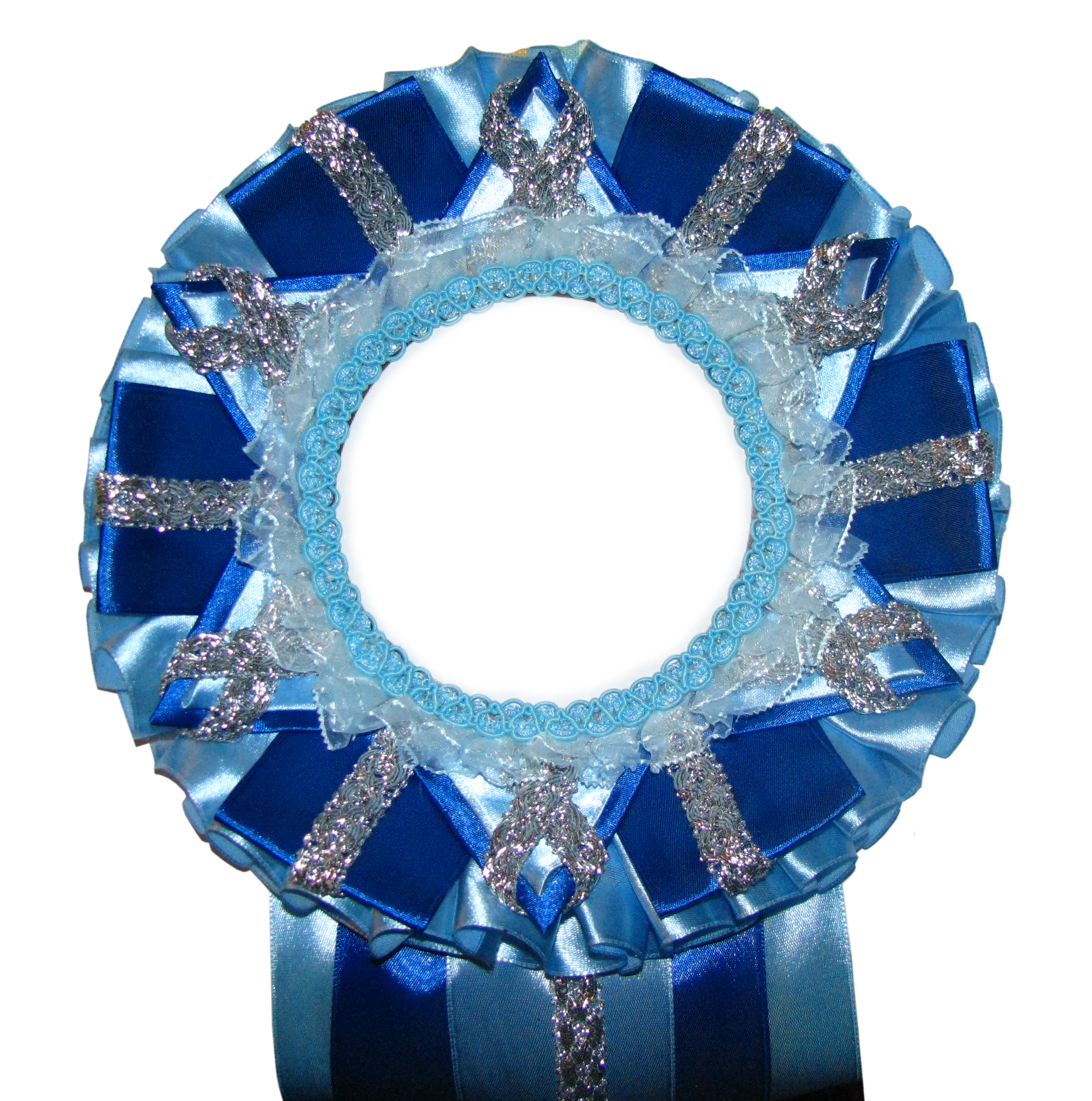 материалы:Лента атласная 2 цвета, тесьма серебристая, твёрдая, тесьма кружевная.по внешнему краю около 22см